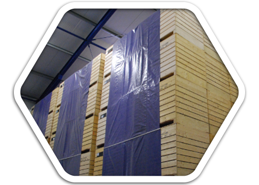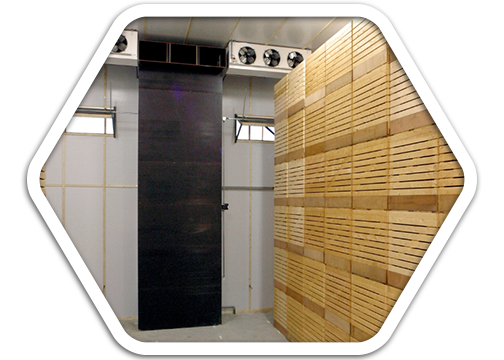 Suction ventilation is suitable for the forced ventilation of produce in open boxes stacked up to a height of approximately 7.5 metres. Air is drawn through the boxes by the negative pressure created between adjacent rows.